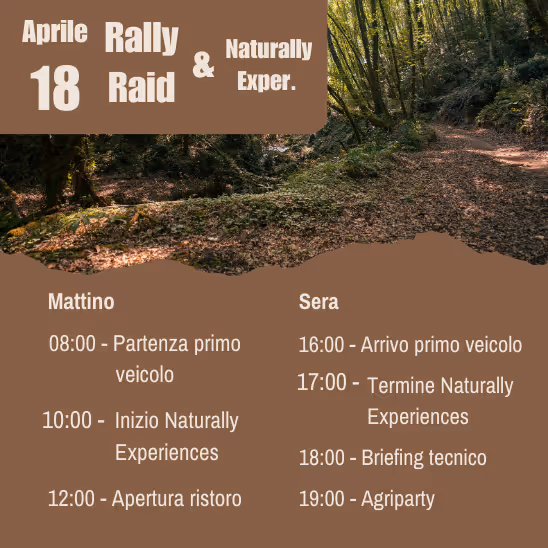 Un festival dal 15 al 19 aprile, costruito intorno al modo in cui vuoi viverlo. Puoi partire il 15 con la versione completa unendo l’esclusivo Naturally Coast to Coast e il Naturally Rally Raid, per un’esperienza continua di fuoristrada senza compromessi.